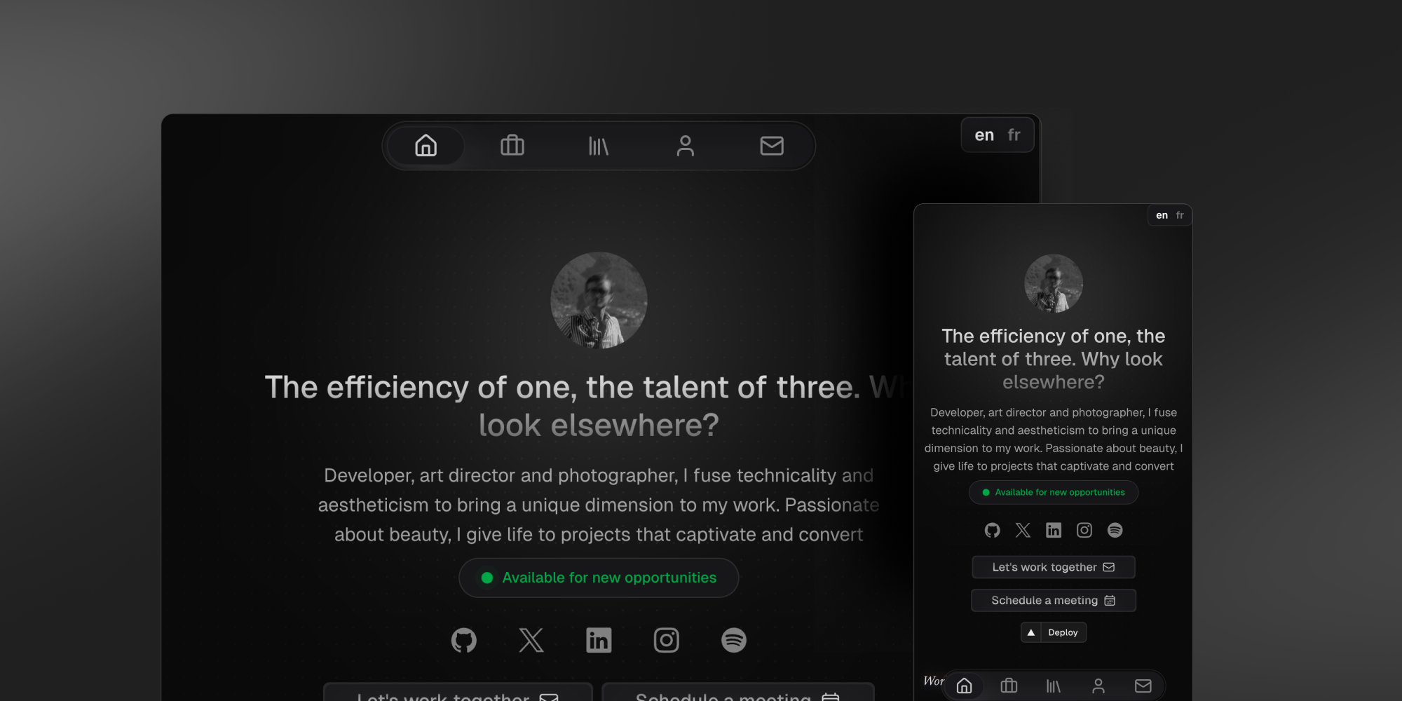 Canvas Portfolio is a fully customizable i18n portfolio template built with Nuxt and Nuxt UI, designed to help you showcase your work, testimonials, and key information with ease. The template integrates with Nuxt Studio for a smooth editing experience, while leveraging Nuxt Content for content management. Built with performance, flexibility, and responsiveness in mind, Canvas Portfolio provides a robust foundation for developers and creatives alike.